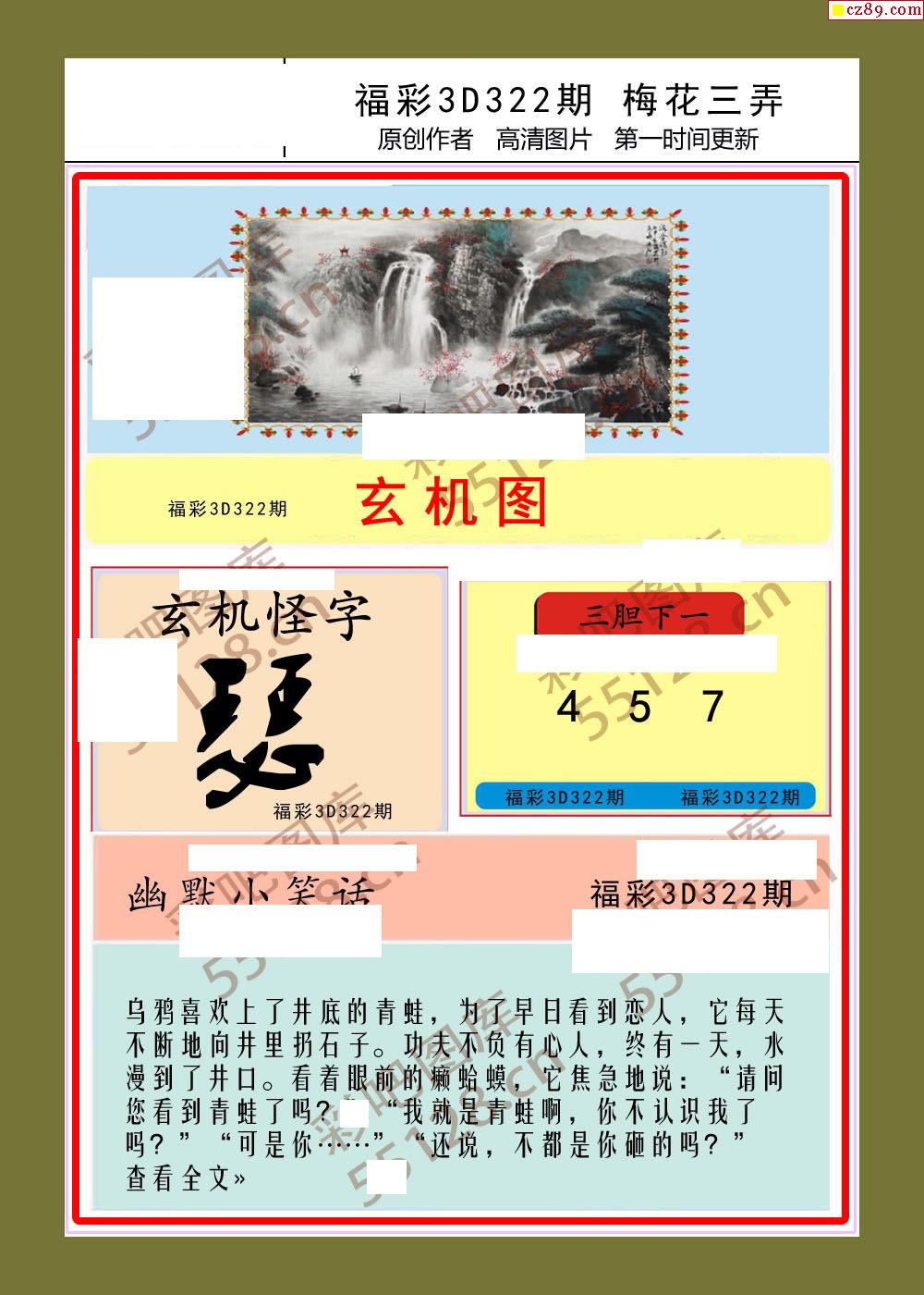 梅花三弄25年322期福彩3d图谜