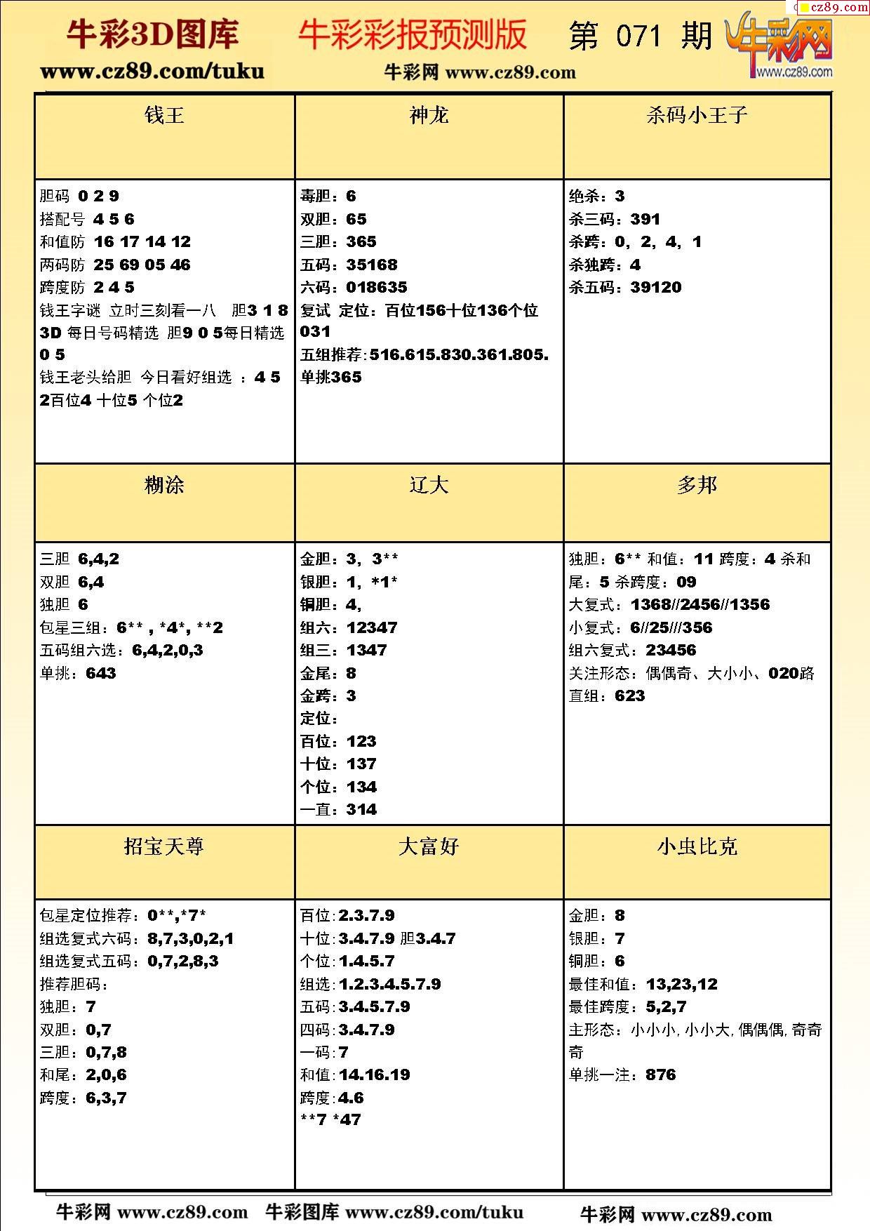 牛彩版3D预测彩报图26年071期打印版