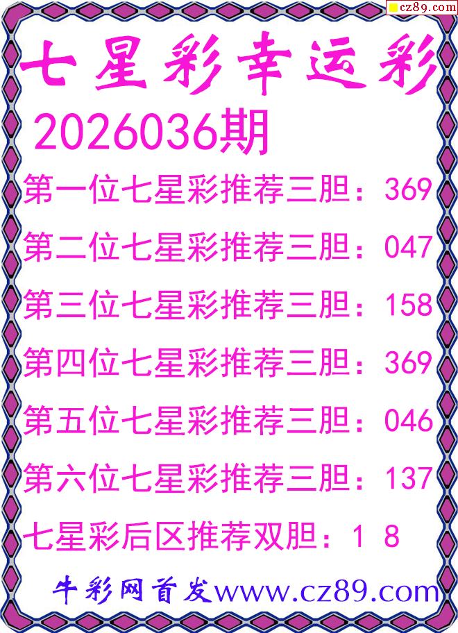 首页 > 七星彩预测 > 七星彩2026036期幸运彩三胆图谜